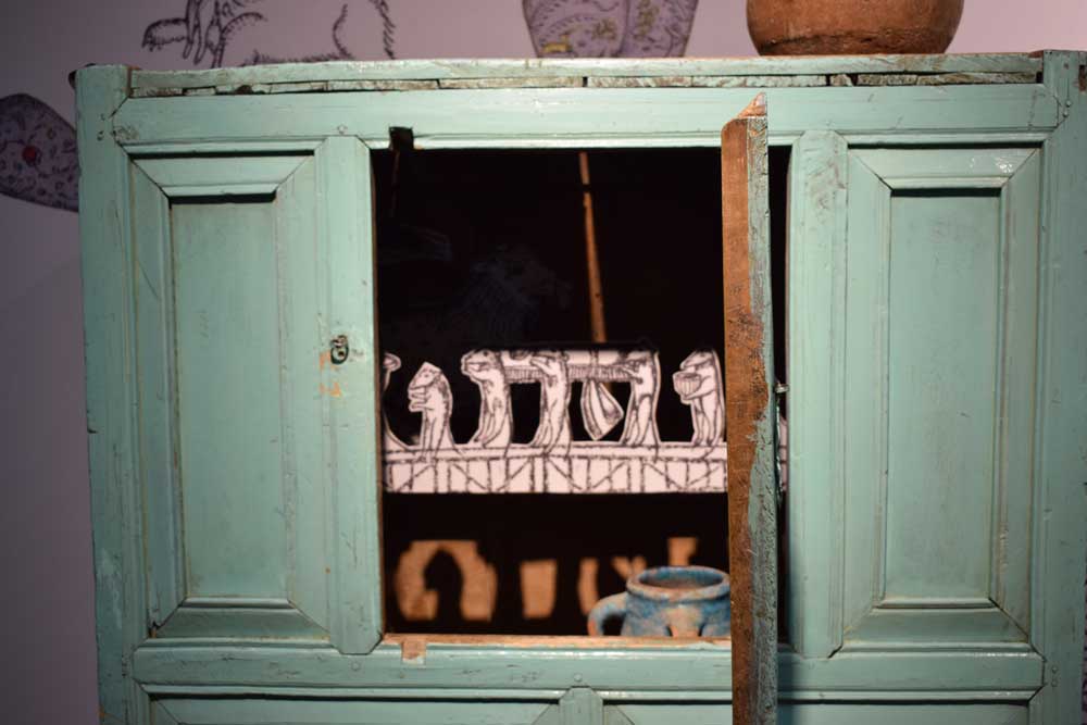 پس از این نوشته در سمت راست درب ورودی لوح های گلی شبیه سازی شده از نمونه اصلی را مشاهده خواهید کرد.