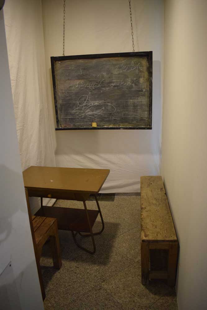 نمونه ای از یک کلاس درس قدیمی در ایران. نکته حایز اهمیت این عکس نیمکت سمت راست است که کاملا واقعی بوده و قدمت چند ده