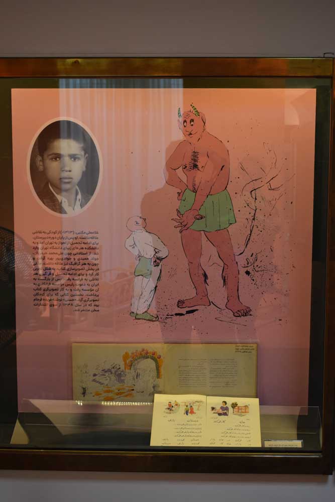 در قسمتی از موزه کودکی ایرانک برخی داستان های قدیمی بصورت چاپی بر روی دیوار قرار داده شده اند. برخی از این شخصیت های داستانی دارای نخ متصلی به اعضای بدنشان هستند که با کشیدن نخ، اعضای بدن موجود به حرکت در آمده و به شخصیت حیات و پویایی می بخشد.