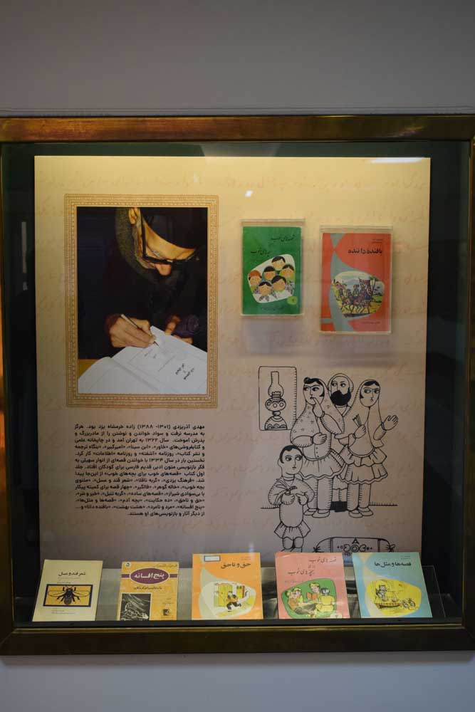 در قسمتی از موزه کتاب های داستانی دست نوشته قدیمی را می توانید مشاهده کنید. برخی از این کتاب ها به همت مهدی آذری یزدی و برخی دیگر به همت افراد پر دغدغه حوزه کودک تدارک دیده شده اند.