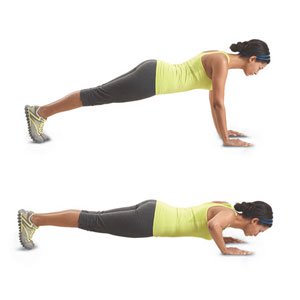 در موقعیت حرکت شنا قرار بگیرید بصورتیکه پاهایتان به اندازه عرض کمر از هم فاصله داشته باشند و دست هایتان کمی خارج از شانه ها قرار گرفته باشند. بدن شما باید شکل خط صافی از سر تا انگشت پایتان داشته باشد. بدنتان را پایین بیاورید تا جاییکه قفسه سینه تقریبا زمین را لمس کند. یک مکث، و سپس برگشت سرعتی به حالت صاف اولیه. این فرآیند یک تکرار حساب میشود.
