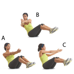 روی زمین بنشینید طوریکه پاهایتان با زانوهای خم شده روبرویتان قرار گرفته باشد و کف پایتان چند سانتیمتر از زمین فاصله داشته باشد. با زاویه ۴۵ درجه به عقب خم شوید، دست هایتان را روبروی صورتتان نگه دارید و کف دست ها را بهم بچسبانید. به آرامی به سمت راست حرکت کنید، مکث کنید و سپس به سمت چپ حرکت کنید. تکرار کنید.