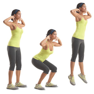 صاف بایستید، پاهایتان را به اندازه ی پهلویتان باز کنید، دستانتان را کنار گوشتان قرار دهید طوریکه انگشتانتان کمی گوشتان را لمس کند و آرنج هایتان را باز در طرفین نگه دارید. زانوهایتان را خم کنید. و بعد سریع و بصورت انفجاری تا جاییکه میتوناید به بالا بپرید. به آرامی روی کف پا پایین بیایید و بلافاصله برای پرش بعدی زانوهایتان را خم کنید.