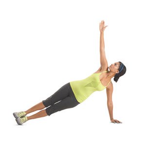 در وضعیت حرکت شنا قرار بگیرید بطوریکه بدنتان از سر تا پا صاف باشد، اما آرنج هایتان را خم نکنید و مستقیم قرار دهید. وزنتان را روی دست چپ منتقل کنیدبه سمت راست بچرخید و دست راستتان را به سمت سقف بیاورید تا بدنتان شکل یک T به خود بگیرد. پای راستتان باید روی پای چپ قرار گرفته باشد. سه ثانیه مکث کنید سپس به حالت اولیه برگردید و با سمت دیگر تکرار کنید. کل این فرآیند یک تکرار حساب میشود.