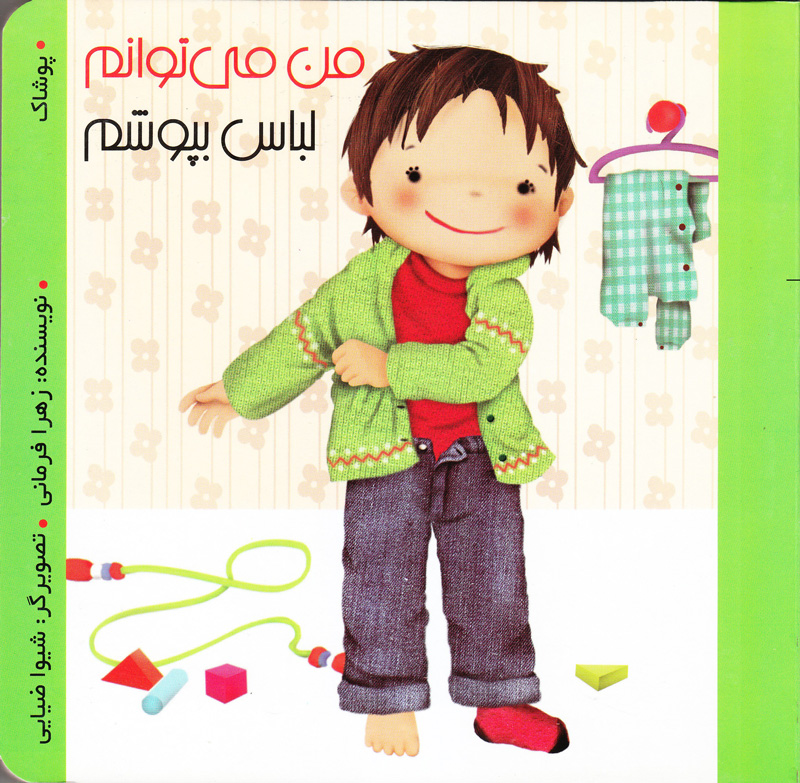 در این کتاب مراحل لباس پوشیدن مرحله به مرحله برای کودک توضیح داده میشود و درمورد انواع لباس ها و کاربردشان آموزش داده میشود. حتی از زمانی که کودک میتواند دستش را در آستینش فرو کند میتوانید در بعضی کارهای بدون ریسک او را مشارکت دهید. این کار هم به رشد مهارت های فیزیکی کودک و هم به اعتماد به نفس و هوش او کمک میکند.